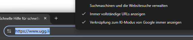 Für uns Admins ist das wenig hilfreich. Darum kann (=sollte) man in seinen Browsern die Verschlimmbesserung („Trimming“) der URL schnell abschalten.