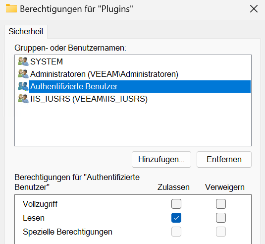 \Veeam Backup and Replication\Plugins' is denied.